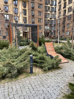 На территории двора имеются беседки, места для отдыха, фонтан, а также детская площадка, спортивная площадка и место для выгула собак.