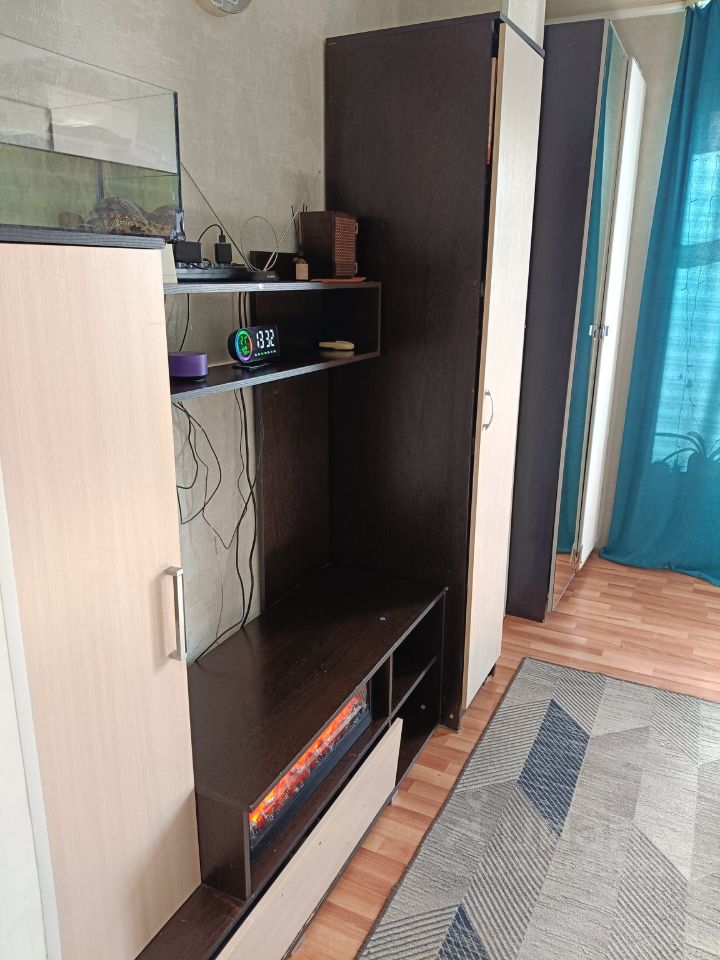 Квартира-студия, с огороженной кухней. Имеется диван, шкаф, холодильник, электрическая плита с духовкой, сплит-система, бойлер, стиральная машинка. Можно с детьми и животными (кроме собак). При выходе из подъезда магнит, в двух минутах ходьбы - пятерочка, парикмахерская, цветочный. Рядом школа и остановка общественного транспорта, ходят 29, 32, 38 маршрутки.