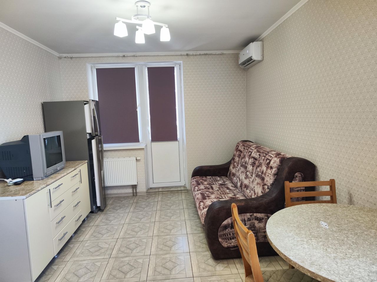 Квартира с планировкой евро2, где отдельно спальня , а кухня гостиная совмещены.