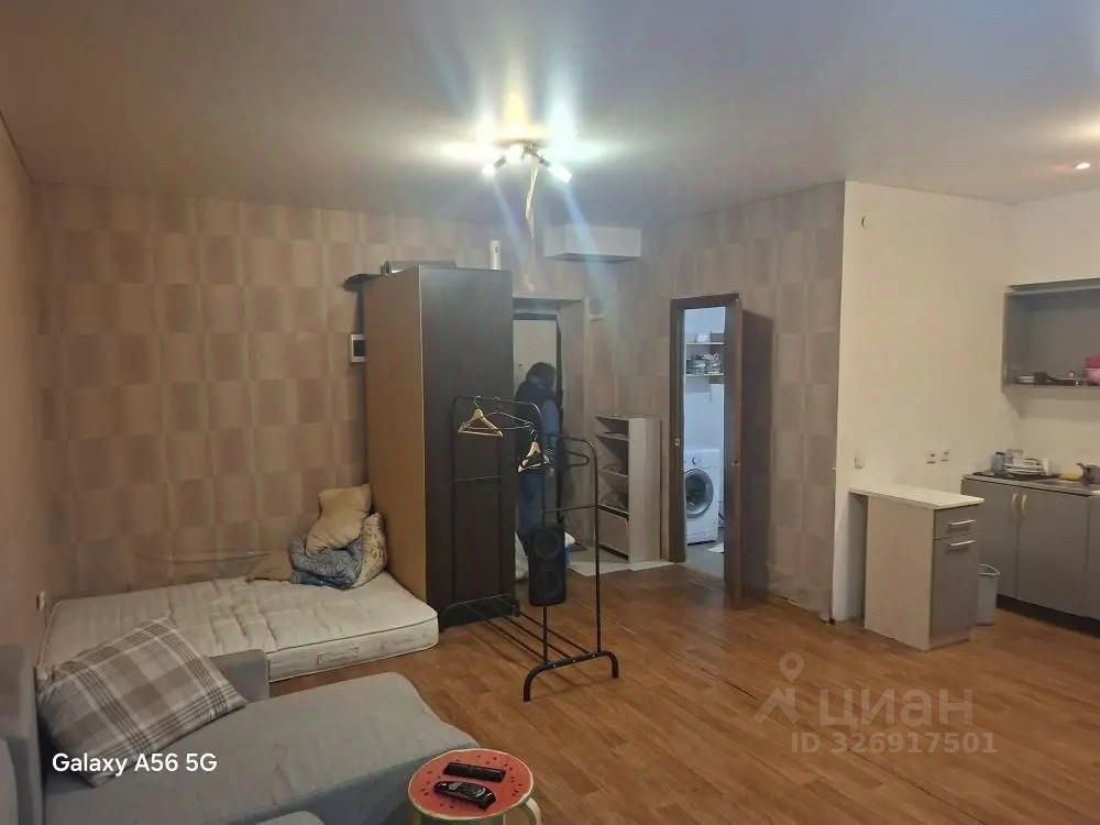 Уютная студия готова к заселению. Расположена в удобном районе: рядом — магазины, остановки общественного транспорта.