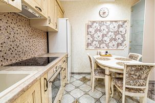 -Техника (ЖК-телевизор со Smаrt-ТV, стиральная машина, электрическая плита, духовой шкаф, холодильник, микроволновая печь, электрочайник, фен, утюг);