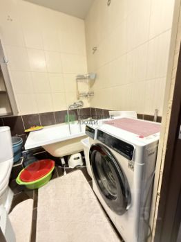 раскладной диван, детская кровать, шкаф, большой комод, телевизор, кондиционер, кухонный гарнитур, холодильник, стиральная машинка, а так же посуда и прочие принадлежности.