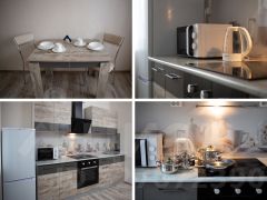 - Холодильник, варочная поверхность, духовка, микроволновка, стиральная машина