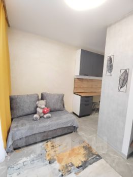 Внутри вас ждёт современная мебель и бытовая техника, включая телевизор. Санузел совмещённый, выполнен в современном стиле. Из окон открывается приятный вид на тихий двор без машин.