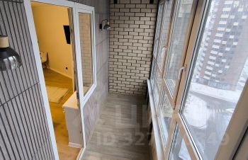 Просторная застеклённая лоджия, где можно организовать дополнительное пространство для хранения или отдыха.