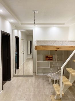 Я собственник, сдам уютную однокомнатную квартиру, продуманную до мелочей с необычным дизайнерским решением - кровать-чердак (двухспальная кровать 180х200, которая закреплена под потолком и никак визуально не загромождает пространство квартиры). Смотрите фотки :).