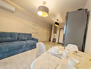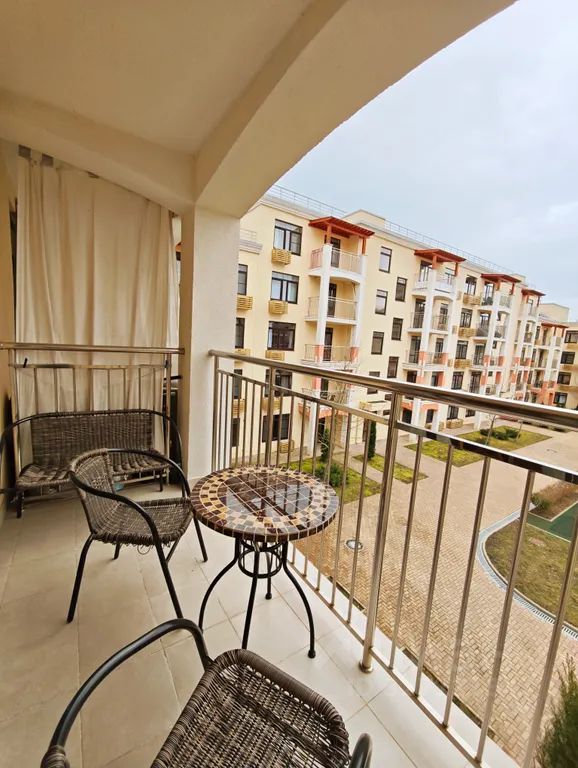 На территории комплекса есть бассейны, детские и спортивные площадки, теннисное и футбольное поле,большая парковка, все необходимые магазины, супермаркеты, пункты выдачи маркетплейсов. До моря ходят автобусы несколько раз в день, можно и пешком прогуляться минут 30-40. Если Вы на собственном автомобиле, то 5 минут езды.