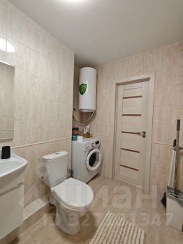 Большой санузел с ванной, стиральной машинкой, всеми необходимыми туалетными принадлежностями.