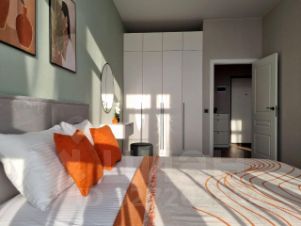 - изолированная спальня с кроватью, туалетным столиком и вместительным шкафом в потолок, шторы блэк-аут