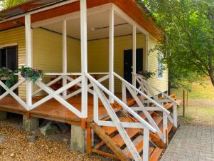 Уютный, комфортабельный вариант для отдыха семьи или небольшой компании. В номере расположена двуспальная кровать и дополнительное спальное место — удобная тумба-раскладушка, что позволяет с комфортом разместиться втроём. Есть просторная веранда, где приятно проводить время на свежем воздухе.