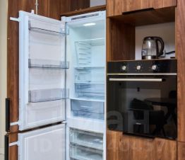 Вся техника — встроенная: Брендовая кухонная техника (холодильник, духовой шкаф, варочная панель) гармонично вписана в интерьер.