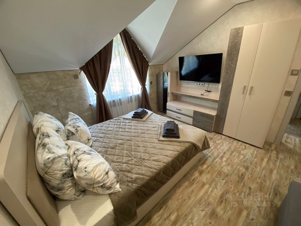 Размещение: спальня с большой кроватью + 2 удобных дивана.