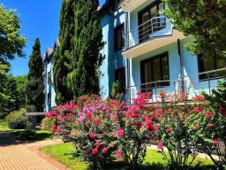 До вокзала — 15 мин, до Сочи — 1,5 часа на электричке.