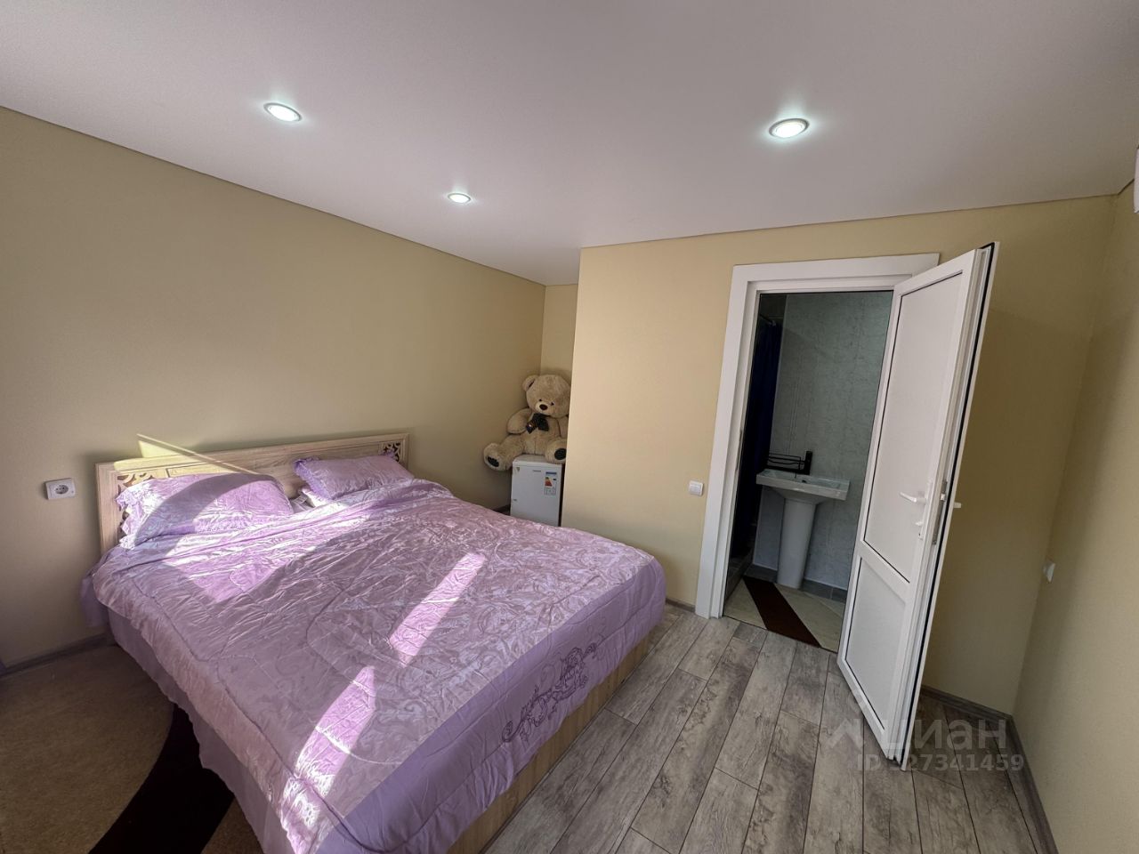 первая комната для двоих : двухспальная кровать, маленький холодильник , душ , туалет в номере кондиционер!