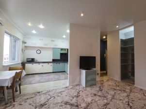 Кухня оснащена всей необходимой техникой: холодильником, плитой, микроволновой печью и духовым шкафом. Санузел совместный, есть стиральная машинка.