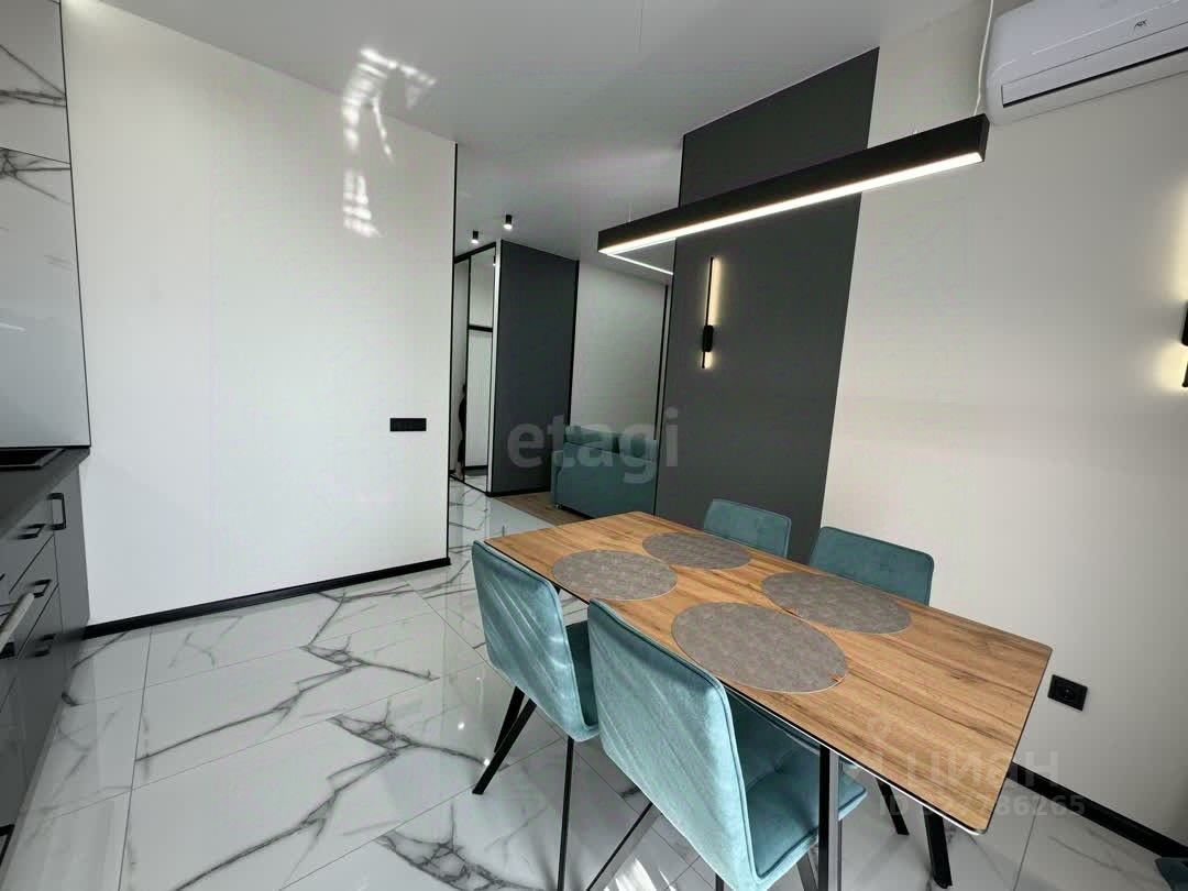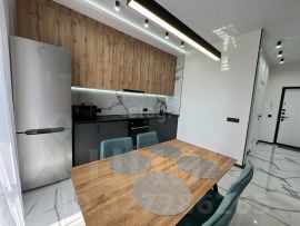 Есть всё необходимое для комфортного проживания из мебели и техники: мощный кондиционер, духовой шкаф, индукционная плита, микроволновая печь, холодильник, стиральная машинка, а также утюг и гладильная доска.