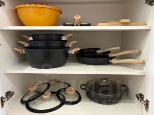 Вся необходимая посуда и кухонная утварь для готовки и сервировки. Ванная комната уровня отеля 5*: