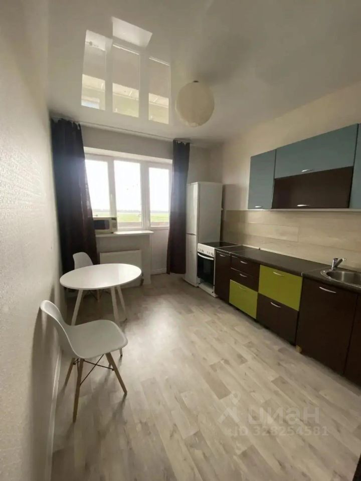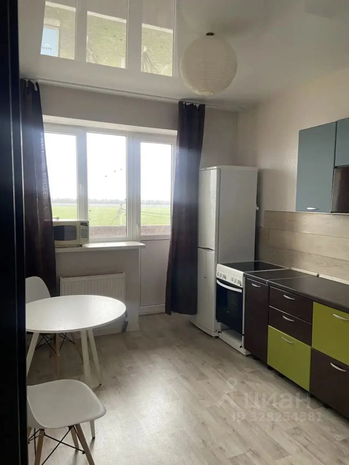 Кухня просторная с выходом на балкон, имеется кухонный гарнитур, эл.плита, микроволновая печь,холодильник, обеденный стол, стулья.