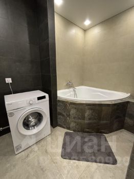 В ванной комнате установлена стильная угловая ванна, совмещённый санузел отделан качественной плиткой. В наличии стиральная машина.