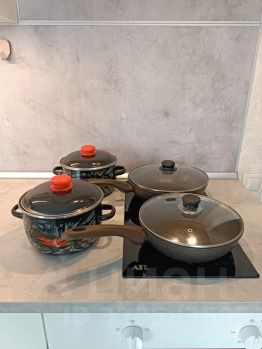 Оборудование студии: Просторная светлая студия имеет два панорамных окна, два балкона (один французский). В окнах жалюзи блэкаут. Большая двуспальная кровать с ортопедическим матрасом с шикарным видом на море. Двухместный раскладной диван, обеденная зона, большой шкаф, телевизор, Wi-Fi, гладильная доска, сушилка для белья, СВЧ, духовой шкаф, варочная панель, чайник, холодильник, посуда для приготовления и приёма пищи.