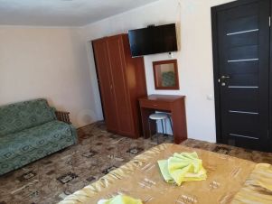 В номере душ, туалет, сплит система, холодильник, телевизор с плоским экраном. Предоставляются постельные и туалетно-косметические принадлежности, полотенца. Кухня рядом, со всем необходимым для приготовления пищи. Стиральная машина, стирка бесплатно при проживании от 2 суток, менее 2 суток стирка 200 рублей. К вашим услугам большая крытая площадка с мангалом, столики для "посиделок" на свежем воздухе во дворе. На всей территории гостевого дома wi-fi. Стоянка для автомобиля рядом с домом.