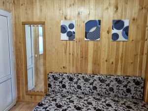Номер расположен на 1м этаже и состоит и кухни со столом, стульями, диваном, кухонной мебелью и всеми принадлежностями для приготовления пищи, комнаты отдыха со шкафом, 2спальной кроватью, 2мя диванами, плоским телевизором и туалетной комнаты с душем.