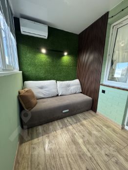 Лоджия застеклена и отделана деревянными декоративными панелями создавая дополнительное пространство для отдыха и ещё одно спальное место для гостей.