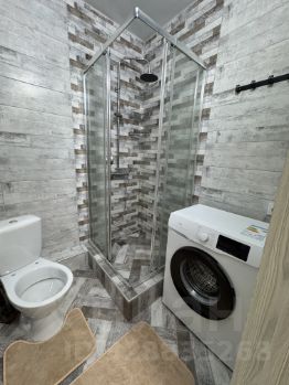 Санузел совмещённый, оборудован современной душевой кабиной и стиральной машиной, зеркалом.