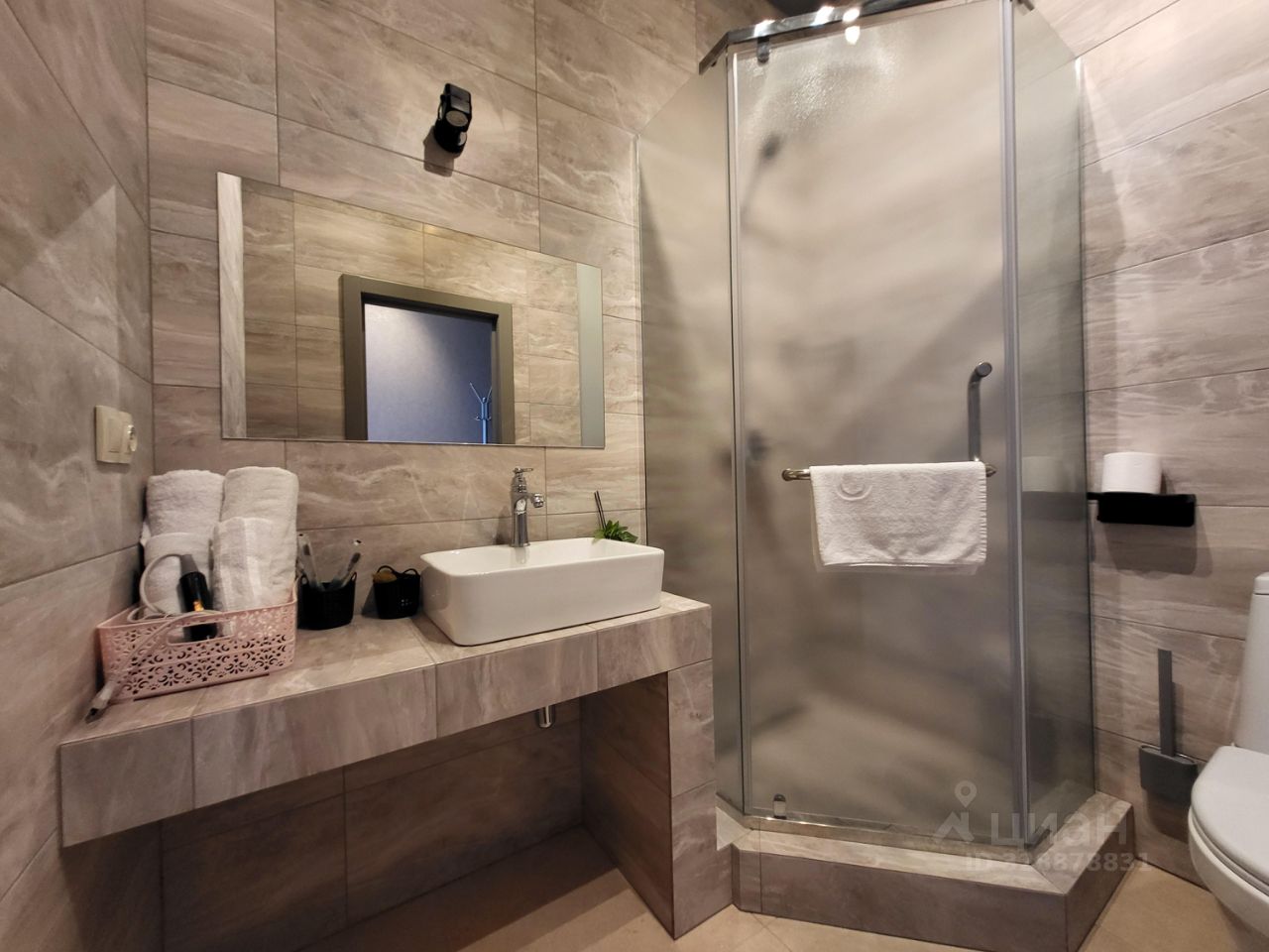 • санузел с душевым уголком, фен, полотенца