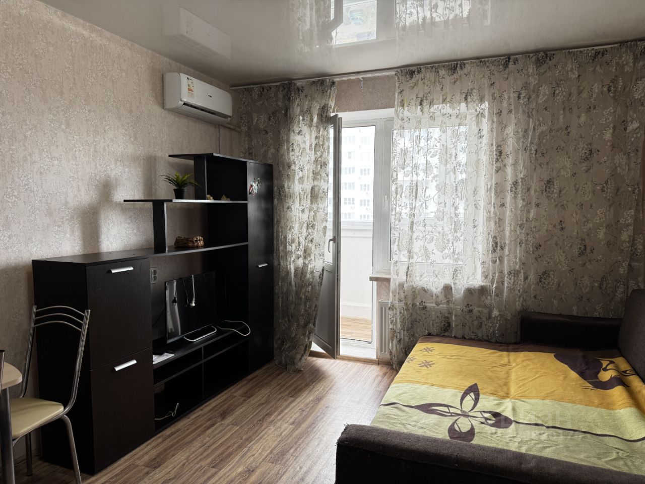 В квартире выполнен косметический ремонт, есть вся необходимая мебель как в комнате, так и на кухне. Для удобства проживания установлена современная техника: кондиционер, холодильник, телевизор и стиральная машина. Санузел совмещённый, с полноценной ванной, что позволит расслабиться после рабочего дня. Также имеется балкон, где можно наслаждаться утренним кофе.