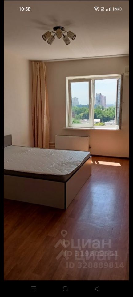 Общая площадь 42 метра, идеальная планировка на две стороны, на север и юг, летом не жарко. Спальное место в комнате большая кровать, спальное место есть и на кухне, диван. Санузел раздельный, очень удобно.