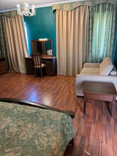 Площадь номера 21 кв.метров. Номер состоит из одной комнаты разделенной на две зоны: зоны отдыха и деловой зоны. В номере: большая кровать, удобный диван, журнальный стол, универсальный стол, плоский телевизор, просторный гардероб В ванной комнате: душевая кабина,
