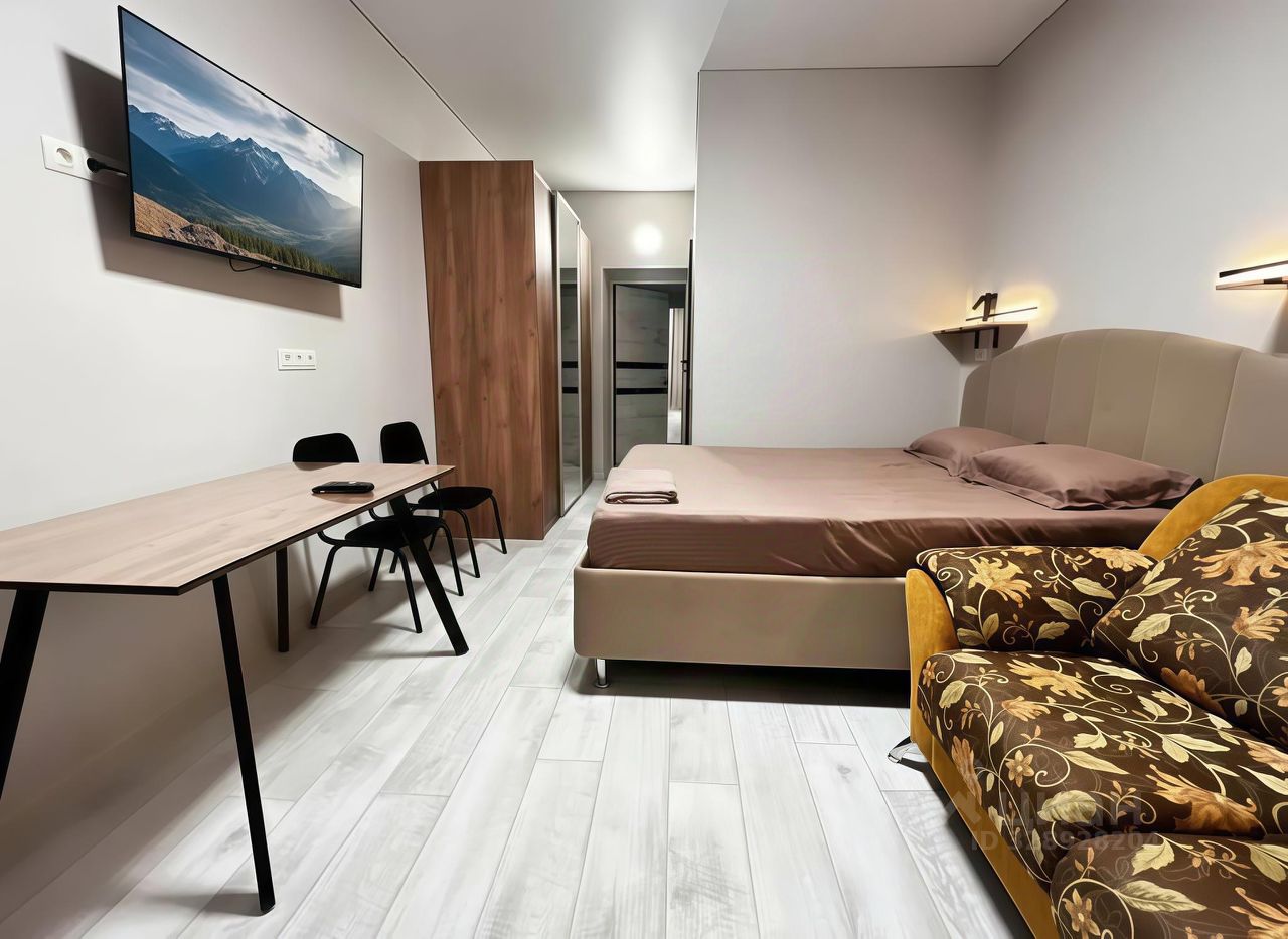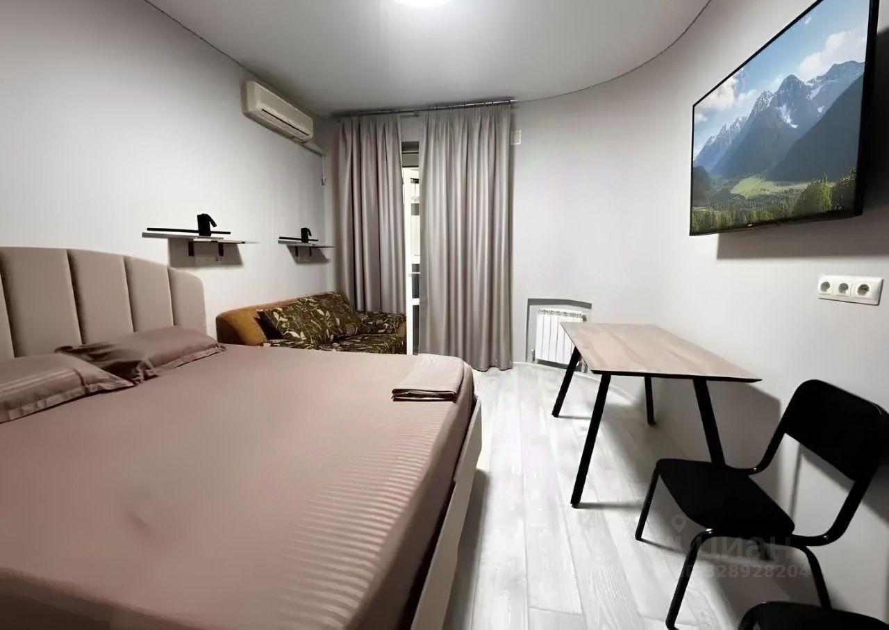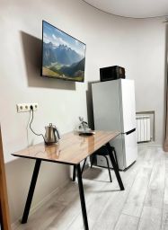 Имеется: Телевизор, кондиционер, шкаф, вешалка, зеркало, журнальный столик, кухня, газовая плита, посуда, столовые приборы, холодильник, чайник, стулья, корзина для мусора.