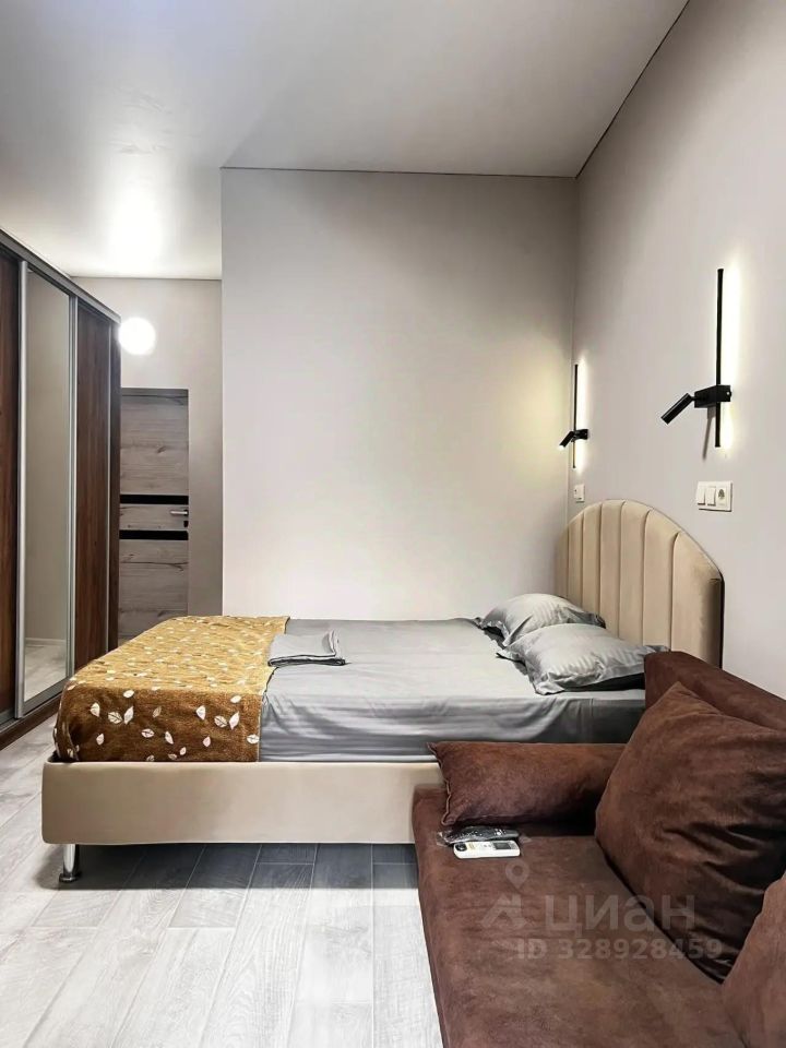 Имеет спальню с приятным интерьером.