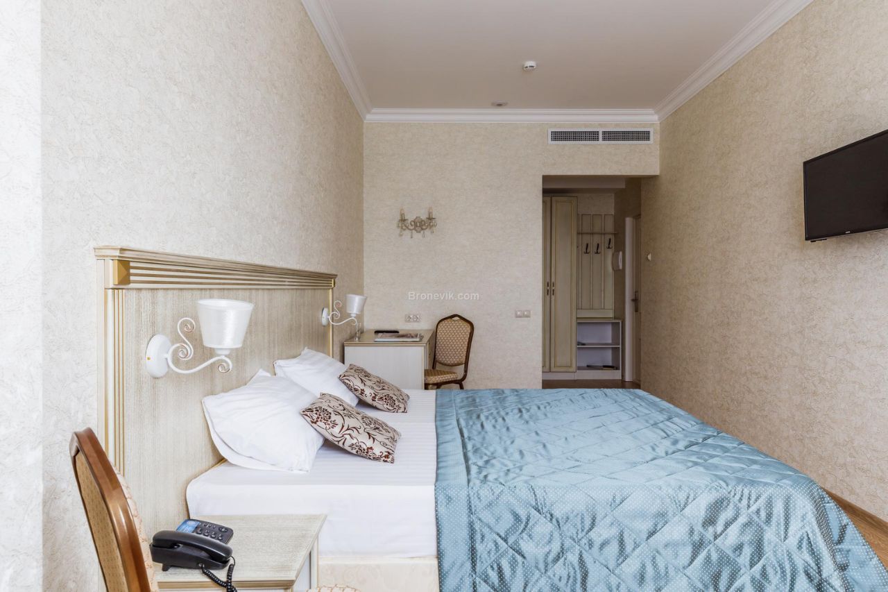 Это улучшенный стандартный номер рассчитан на комфортабельное размещение двух человек с полным спектром услуг отеля. Номер оснащен ЖК-телевизором с цифровыми каналами, и выходом в интернет прямо с экрана ТВ. Удобный шкаф-купе для вещей, с вешалками и полками. Сейф для ценных вещей. Есть мини-бар с большим ассортиментом напитков для утоления жажды. Для письменной работы есть удобный стул и стол. Для работы с ноутбуком или мобильным устройством имеется высокоскоростной интернет Wi-Fi. Чтобы не отвлекаться на повседневные вопросы работает прачечное отделение, поэтому все необходимые вещи к утру будут постираны и выглаженные; услуга будильник не даст Вам проспать на деловую встречу, так как в номере комфортная, большая двуспальная кровать из которой не хочется вставать. В ванной комнате есть душевая кабина и остальная необходимая сантехника. Туалетно-косметические принадлежности высокого качества, полотенца, халат, тапочки и фен чтобы вы с комфортом проснулись и начали свой день.