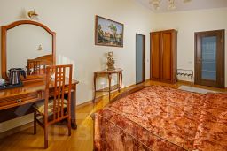 Номер "Люкс Presidential" - воплощение роскоши европейского дизайна, с просторной гостиной и элегантной спальней, собственным конференц-залом , двумя великолепными ванными комнатами с эксклюзивными туалетными принадлежностями. Светлые воздушные тона в интерьере контрастируют с яркими цветовыми акцентами и создают неповторимую торжественную атмосферу. Две большие ванные комнаты с естественным освещением и французским балконом оборудованы отдельной ванной и душевой кабиной. Из окон люкса открывается панорамный вид на город и на двор.
