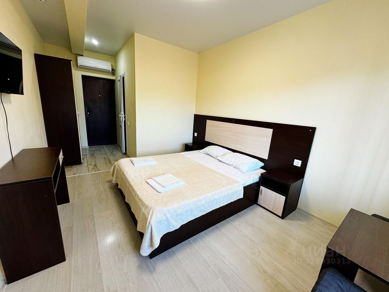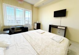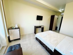 Двухместный номер с выходом на балкон.На балконе есть стол и стулья. Номер оборудован двухспальной кроватью,телевизор,холодильник,шкаф для одежды,чайник,кондиционер.