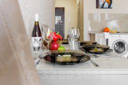 В апартаментах гостям предлагается размещение на удобных спальных местах: двуспальные кровати, раскладные диваны, организовано рабочее пространство. К услугам гостей во всех квартирах: