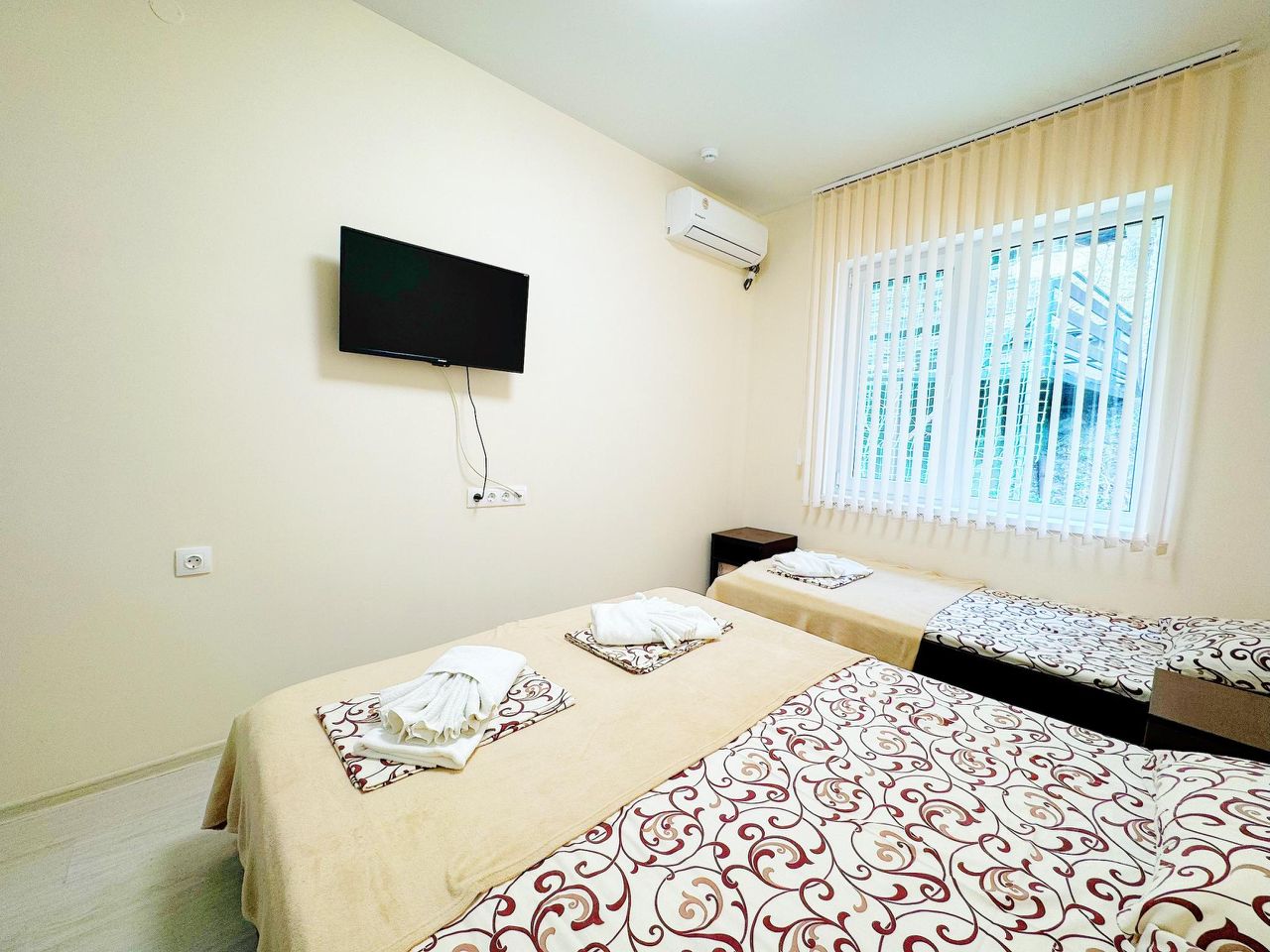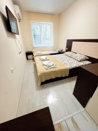 Трехместный номер стандарт оборудован всем необходимым: кровать телевизор холодильник кондиционер шкаф чайник