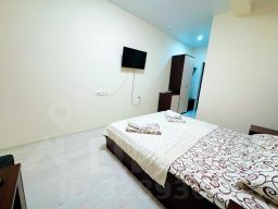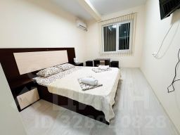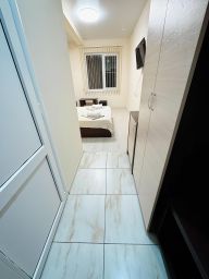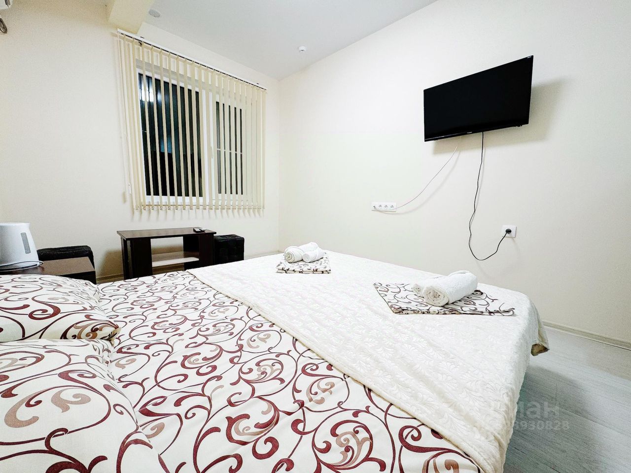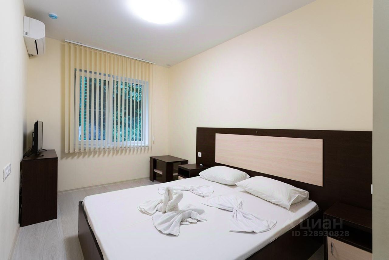 Номер без балкона, оснащен всей необходимой мебелью. Также в номере имеется душевая комната, установлены сплит-система, телевизор, холодильник, электрочайник.