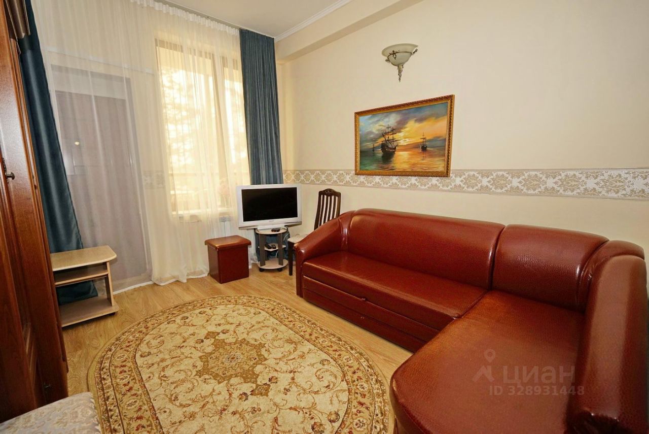 Номер с выходом на общий балкон. В номере 2 комнаты. В одной комнате: двуспальная кровать, диван-малютка, телевизор, холодильник, шкаф, сплит-система. В другой комнате: раскладной диван, телевизор, сплит-система. Сан.узел.