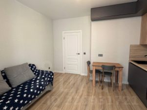 Студия выполнена в стиле евроремонт и полностью готова для комфортного проживания. Имеется вся необходимая мебель как в комнате, так и на компактной кухне. Санузел совмещенный, оборудован ванной, что позволит расслабиться после долгого дня. Также имеется балкон, где можно наслаждаться утренним кофе.