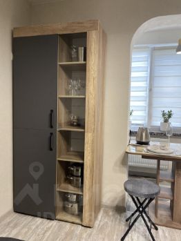 Кухонная зона оборудована всем необходимым: индукционной плитой, холодильником, шкафами для хранения продуктов;