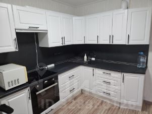 На кухне - установлен кухонный гарнитур, варочная панель и духовой шкаф электрические, также есть вытяжка электрическая и старенькая микроволновка.
