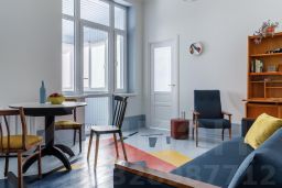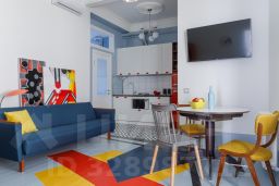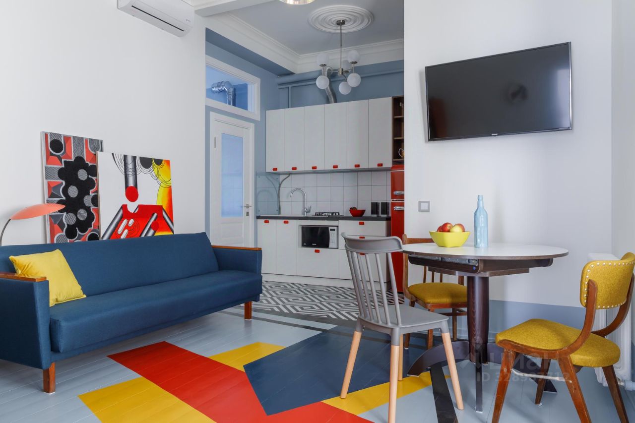 Наша квартира - настоящее произведение искусства! Расположена в самом центре Краснодара, прямо с балкона открывается вид на улицу Красную. Дизайнерский ремонт в ретро-стиле, вручную расписанный пол. Диван, секретер, стулья, радиоприемник, проигрыватель с пластинками, винтажные ручки и люстры, посуда - настоящие предметы советского прошлого! Дизайн-проект этих апартаментов был удостоен публикации в журнале ELLE DECORATION. Вид из окон на знаменитую гостиницу Марриотт и Архитектор бар. Рядом поющие фонтаны и Театр Драмы.