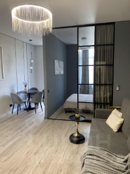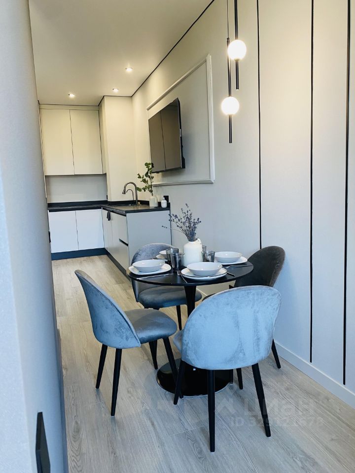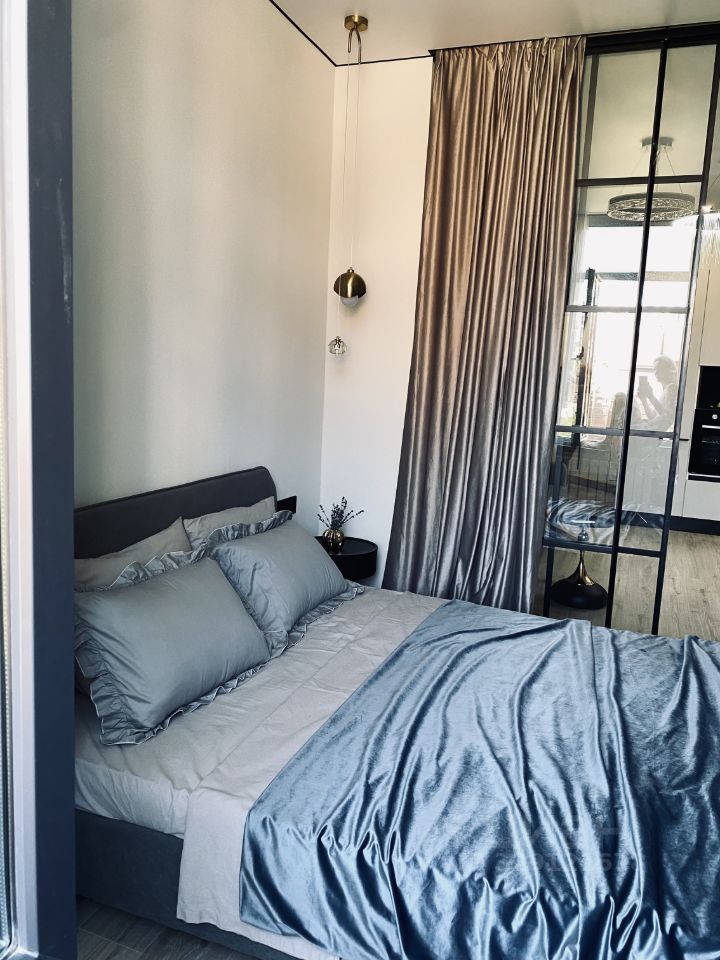 В квартире просторная кухня-гостиная с современным интерьером и стильным декором. В комнате установлен кондиционер и большой телевизор 55 дюймов. Кухня оборудована всей необходимой техникой, включая холодильник, плиту и посудомоечную машину. Спальня отделена стеклянной перегородкой и шторкой для более камерной обстановки, оснащена кроватью с удобным матрасом, шкафом для одежды. В квартиры продуманы разные варианты освещения, включая закарнизную подсветку и стильные подвесные светильники. В ванной комнате тропический душ, стиральная машинка и гигиенический душ для вашего удобства.