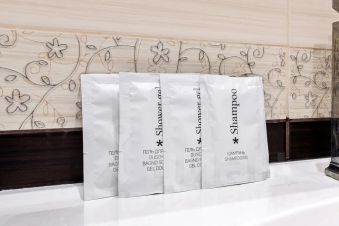 Индивидуальные косметические наборы: шампунь, гель, мыло, тапочки