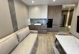 Квартира полностью меблирована и оснащена всей необходимой бытовой техникой для вашего комфортного проживания. Вас ждет удобный диван-кровать, вместительный шкаф для хранения вещей, обеденный стол со стульями. На кухне имеется современный кухонный гарнитур, холодильник, электрическая плита и духовой шкаф. В квартире также установлена стиральная машина, что является неоспоримым преимуществом.