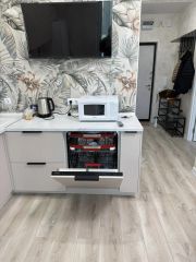 * Комплектация: Полностью укомплектована всей необходимой мебелью и бытовой техникой (сплит система, стиральная машинка, холодильник, микроволновка, чайник, посудомоечная машинка).