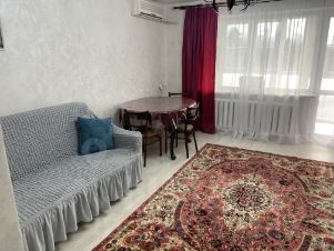 Квартира светлая и просторная, с косметическим ремонтом. В наличии вся необходимая мебель: на кухне и в комнатах. Из техники имеются кондиционер, холодильник, телевизор и стиральная машина. В ванной комнате установлена ванна. Также есть лоджия, где можно отдохнуть на свежем воздухе.